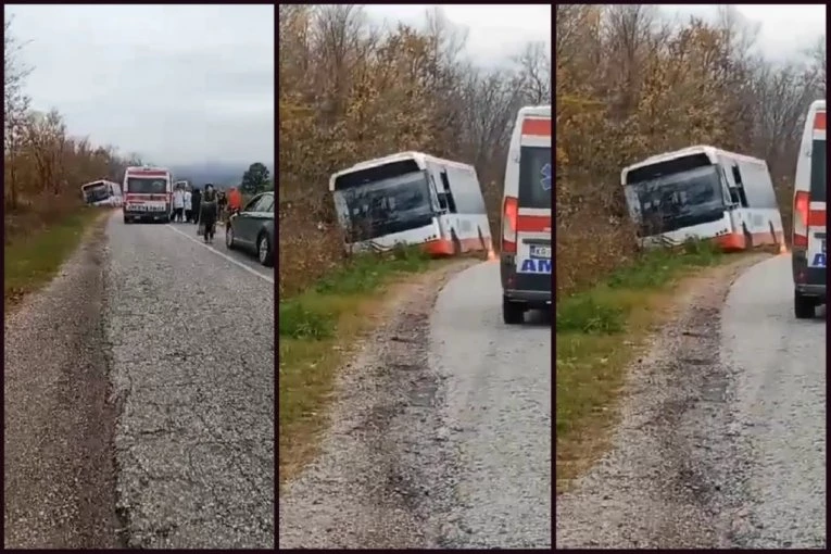 PRVI SNIMCI IZ KRAGUJEVCA: Proklizao autobus pun radnika, povređeno više osoba (VIDEO)