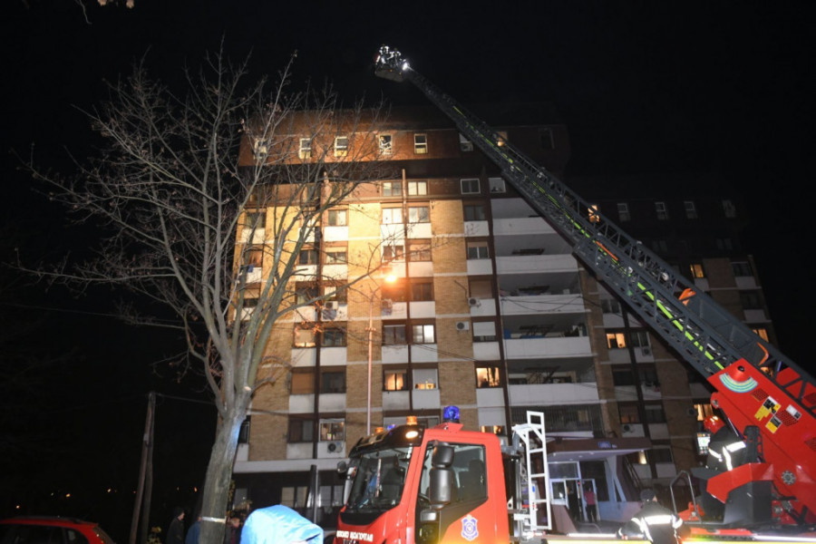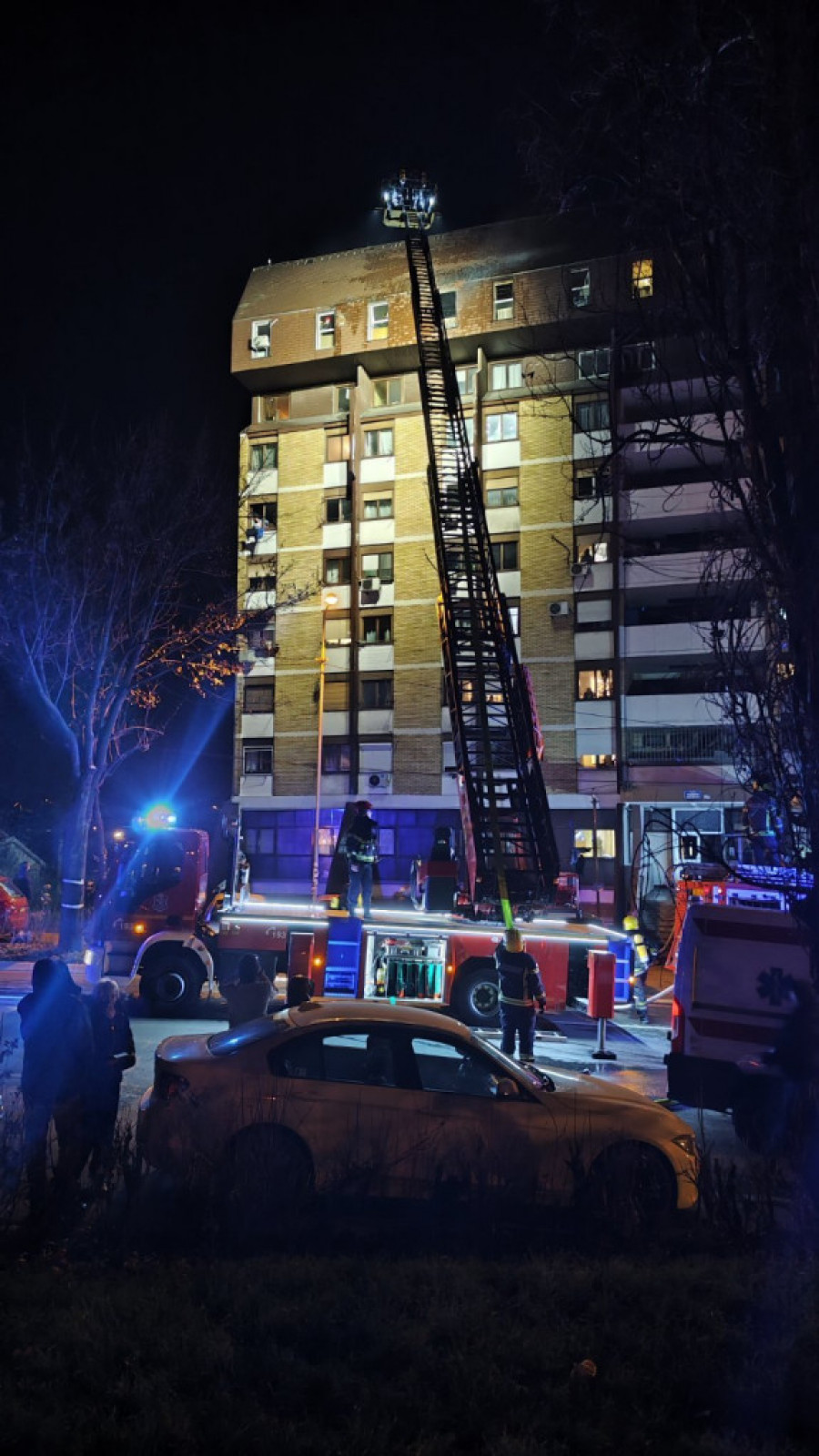 z za sada neutvrdjenih razloga došlo je do požara u stanu, na sedmom spratu, u kojem su opekotine, za sada, zadobila dva NN lica.