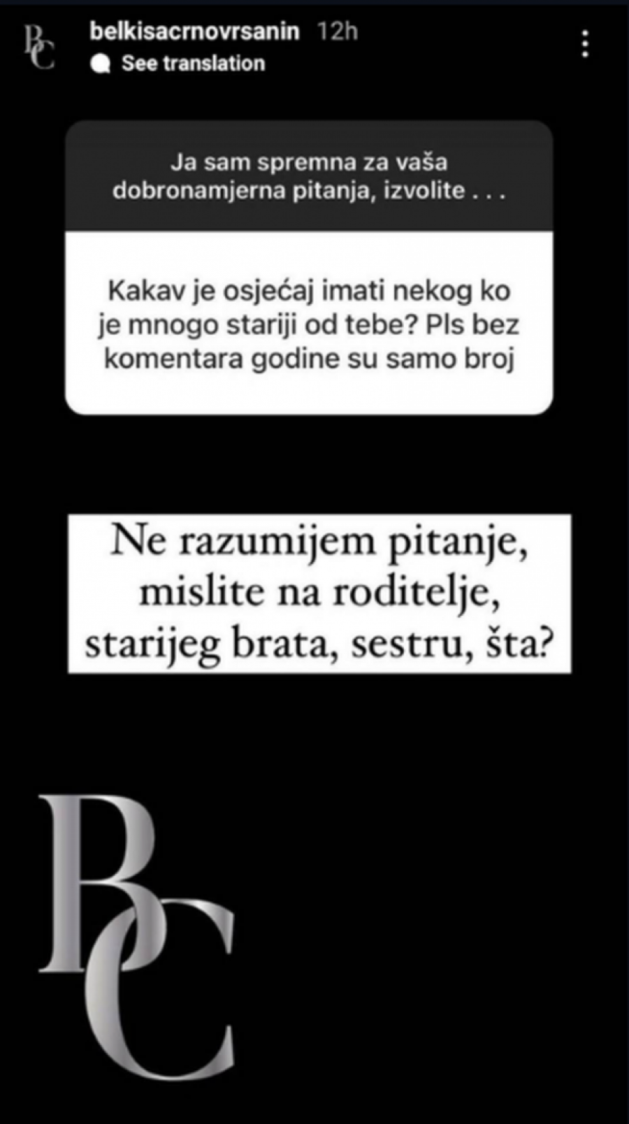 Pored brojnih komplimenata koje joj pratioci šalju, bilo je i pitanje "da li si zauzeta emotivno", na šta je Belkisa odgovorila da jeste.