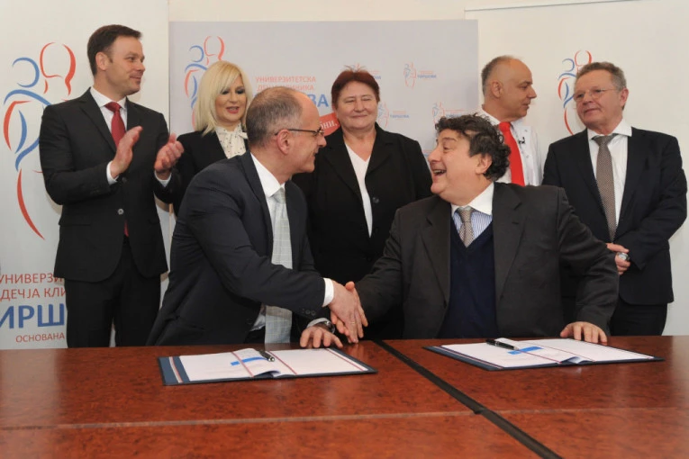 Viceguverner Razvojne banke Saveta Evrope Karlo Montičeli i direktor Kancelarije za upravljanje javnim ulaganjima Marko Blagojević potpisali su danas Sporazum o bespovratnoj finansijskoj pomoći za izradu studije izvodljivosti za igradnju nove zgrade Univerzitetske dečje klinike "Tiršova dva".