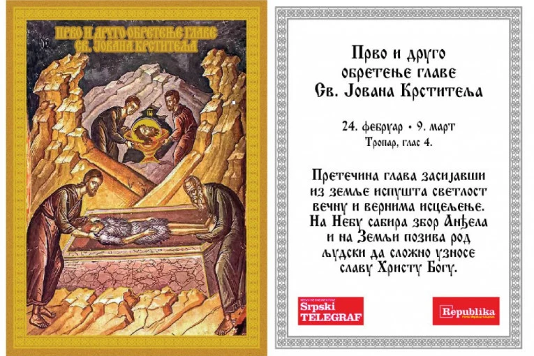 Uz današnje štampano izdanje Srpskog telegrafa na poklon dobijate ikonu Prvo i drugo obretenje glave Svetog Jovana Krstitelja u zlatotisku.