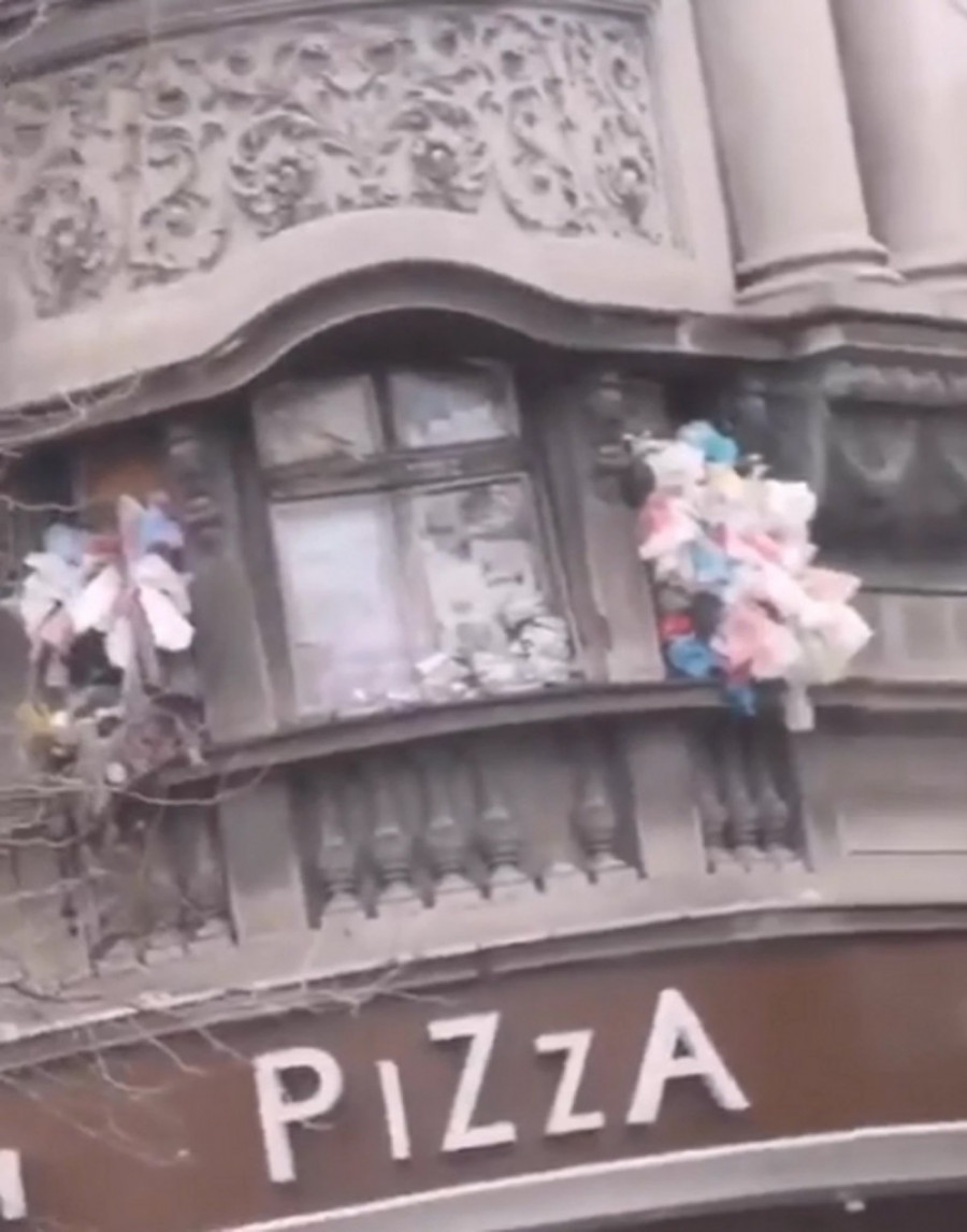 Na njemu se vide prozori iz kojih preliva smeće, gomila kesa koje vise. Vidi se i zatvoren prozor iza kog je celom visinom naslagano đubre., prenosi Blic.