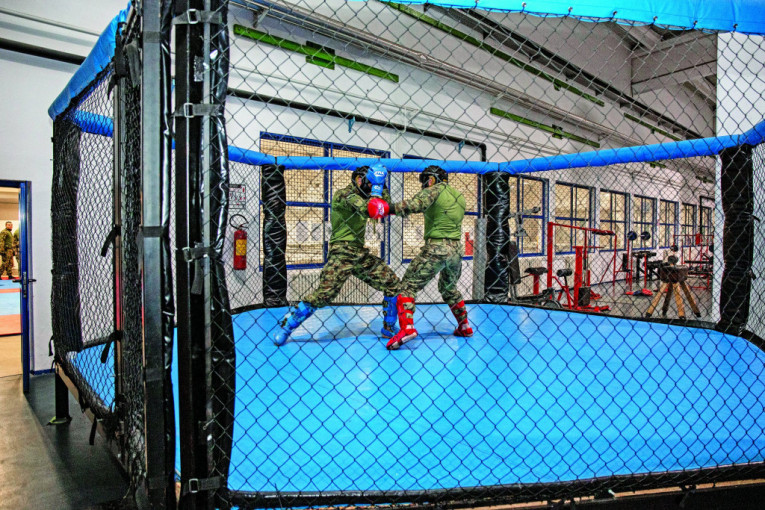 Odmah pored je bokserski ring, gde se trenira i ova borilačka veština. Naravno, kandidatima su na raspolaganju tegovi i sprave za vežbanje, doduše u mnogo skromnijem izdanju nego što ih viđamo po teretanama.