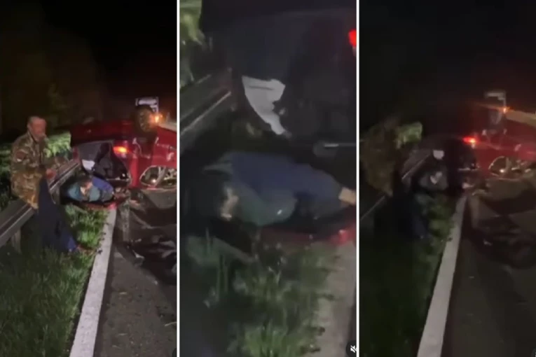 Drugi se migoljio pored njega kako bi se izvukao iz uništenog automobila.