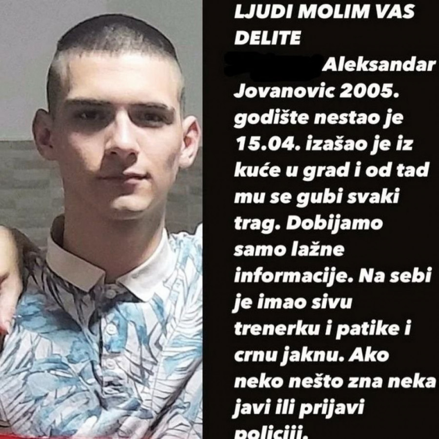 Aleksandrova majka Biljana rekla je za portal Telegraf da je njegov nestanak prijavljen sinoć oko 21 čas.