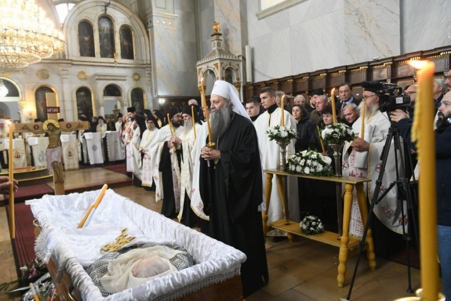 Od majke Radojke Perić dirljivo se oprostio patrijarh Porfirije posle opela, a nakon njega i prisutni članovi Vlade Srbije i predsednik Republike Srpske Milorad Dodik.