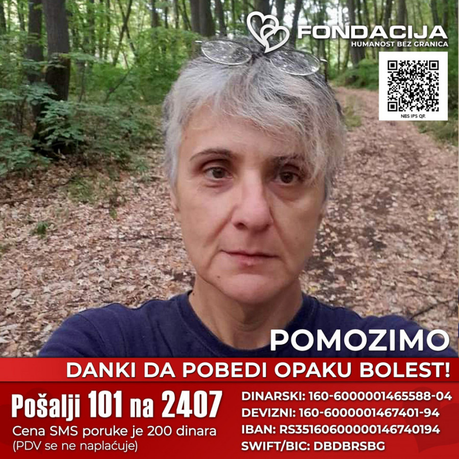 Danka se bori kao lavica a sredstva su joj potrebna za specijalističke i kontrolne preglede, lečenje u zemlji i inostranstvu, dijagnostiku, operativne zahvate, rehabilitaciju u banjskim uslovima, terapije, lekove, suplemente, medicinske aparate i opremu, preparate za poseban režim ishrane kao i za putne troškove i smeštaj.