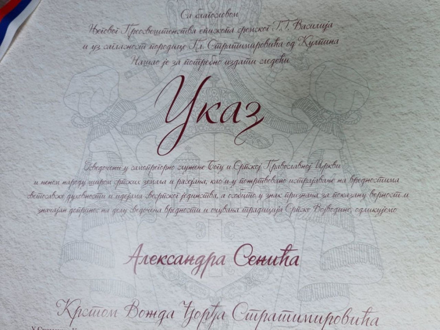 Aleksandar Senić, direktor Sektora za upravljanje izgradnjom u "Koridorima Srbije", sa blagoslovom njegovog preosveštenstva episkopa sremskog Vasilija, dobio je krst vožda Đorđa Stratimirovća, za značajan dopinos očuvanju tradicije Vojvodine