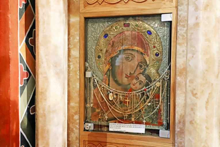 - Pronađena je u ruševinama crkve u gradu Kursk apsolutno neoštećena. U vreme rata u BiH i Hrvatskoj i dejstava na nedužan srpski narod, kako su svedočili sveštenici i monasi, Majka Božja je ruku kojom pridržava Hrista spuštala ispod srebrnog okova koji je na njoj, a kad bi se ratna dejstva umirila, vraćala je ruku na mesto - opisao je iguman.