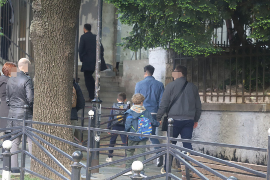 Nešto pre 8 sati počela su da pristižu deca, sva u pratnji odraslih osoba, poneki roditelj ili baka dovodi po vise školaraca.