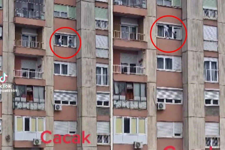 ŠOK SCENA U ČAČKU! Deca VISE sa šestog sprata zgrade - izašla kroz prozor: Usnimljen STRAŠAN prizor (VIDEO)