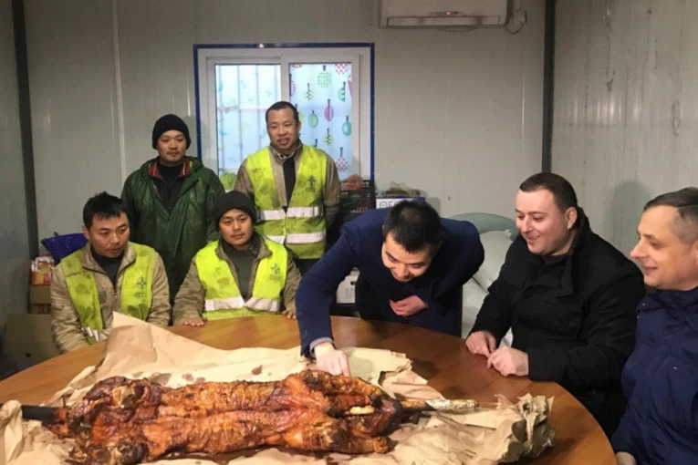 Predsednik opštine Obrenovac Miroslav Čučković posetio je danas radnike na gradilištu mosta preko Save i Kolubare i čestitao im Kinesku novu godinu uz, ni manje ni više - prase na ražnju!