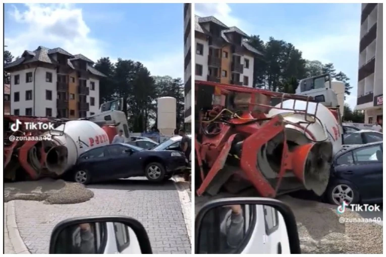 MIKSER PUN BETONA PAO PREKO AUTOMOBILA: Umalo izbegnuta tragedija na Zlatiboru (VIDEO)