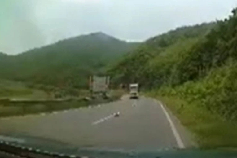 Naime, na snimku koji, kako stoji u opisu, stiže iz Ovčar banje vidi se drama koja se odigrala na putu.