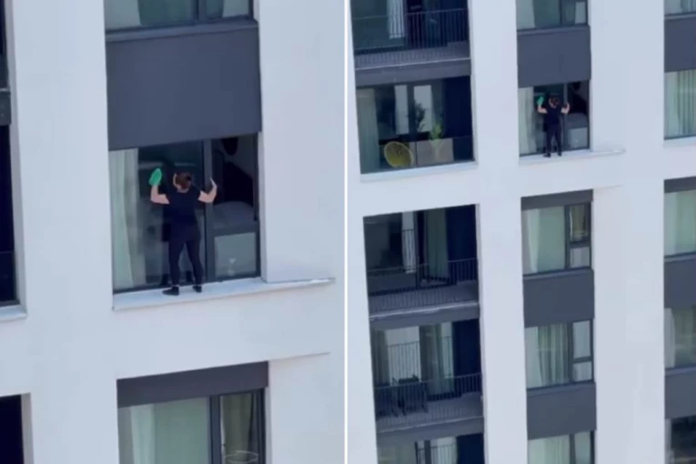 Korisnike društvenih mreža danas je uznemirio snimak žene koja pere prozore. I to ne bi bilo ništa čudno da ona ne stoji na simsu prozora na 11. spratu nebodera u elitnom naselju Beograd na vodi.