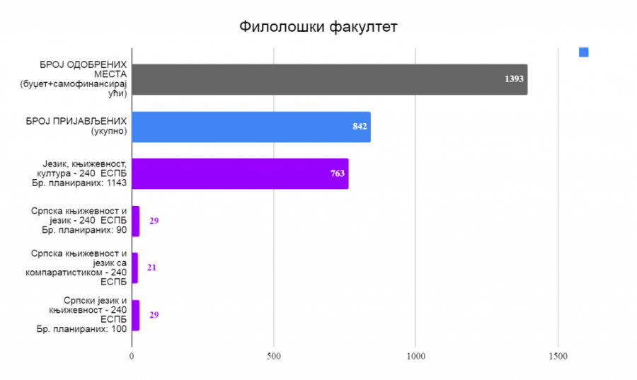 Na društvenim mrežama pojavila se informacija da se na Filološkom fakultetu u Beogradu prijavilo 50 studenata, a ima 1150 mesta. Reporteri Republike bavili su se ovom temom i utvrdili da situacija nije toliko alarmanta, ali svakako nije na zavidnom nivou.