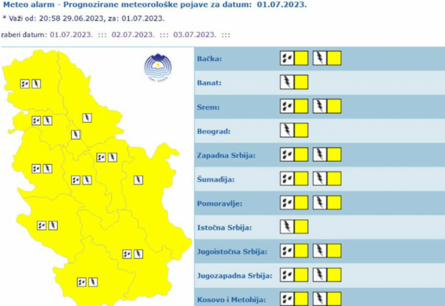 Za područje cele zemlje na snazi je žuti meteo-alarm.