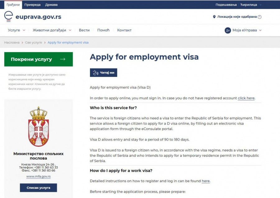 Na stranici na kojoj strani državljani mogu saznati sve o tome kako podneti zahtev za radnu vizu u našoj zemlji, postavljena je i opcija "read me" (pročitaj mi), koja je napravljena prvenstveno za slabovide i slepe.