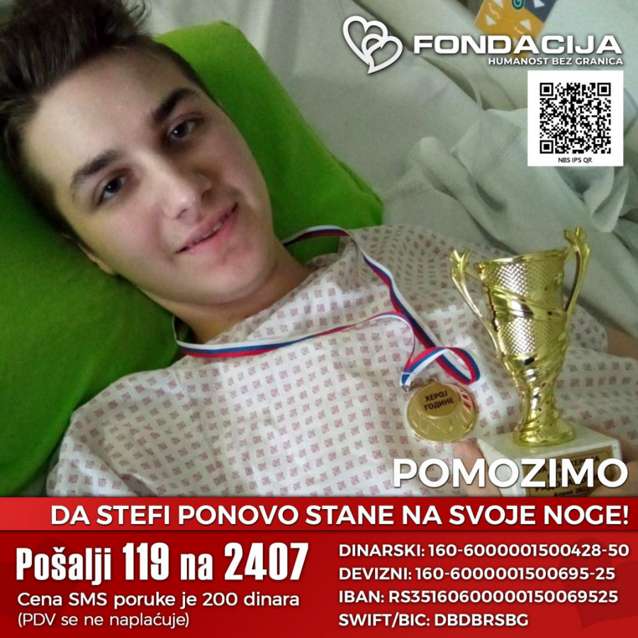 Poslednjih deset godina porodica je sama finansirala lečenje, ali nisu više u mogućnosti jer troškovi lečenja prevazilaze njihove mogućnosti. Ovim putem pozivamo sve ljude dobre volje da pomognu Stefiju da ponovo stane na svoje noge, tako što će preko FONDACIJE – humanost bez granica poslati SMS sa brojem 119 na 2407. Uplate za pomoć u lečenju mogu se izvršiti i na dinarski i devizni račun korisnika i putem E-doniraj internet plaćanjem platnim karticama iz celog sveta, kao i preko PayPal-a.