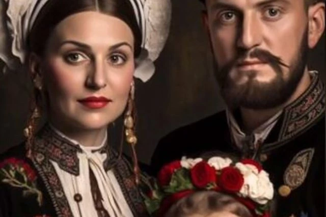 Snimak pokazuje kako su cele porodice izgledale u narodnim nošnjama tj. kako bi izgledale pre nekoliko vekova.