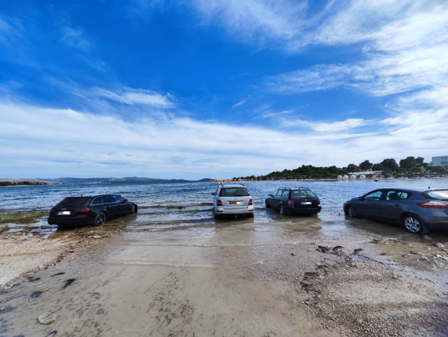 Posetioci jednog od najpopularnijih hrvatskih rizorta, nekoliko kilometara udaljenog od Šibenika, nemalo su se iznenadili kad su ih parkirani automobili umesto uz put dočekali - u moru.