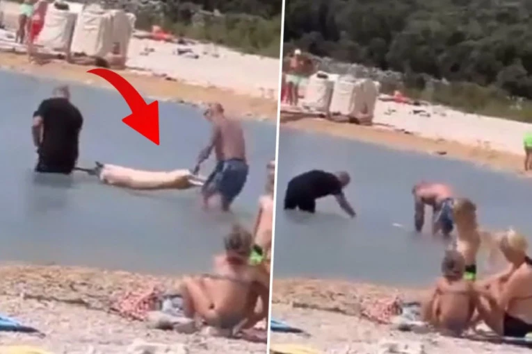 Naime, dvojica muškaraca su nasred plaže, sa prasetom na ražnju ušli u vodu i potopili prase u slanu vodu.