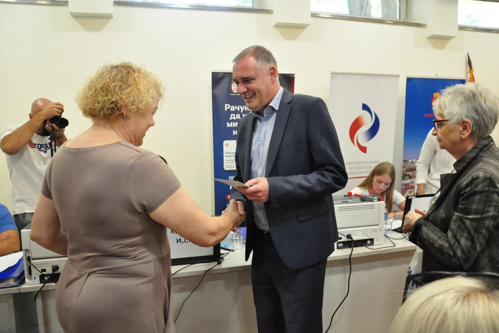 Penzionere su pozdravili predsednik opštine Miloš Vidović i direktorka Sektora za odnose s javnošću Fonda PIO Jelica Timotijević i objasnili im koje benefite mogu očekivati od projekta Penzionerska kartica nove generacije.