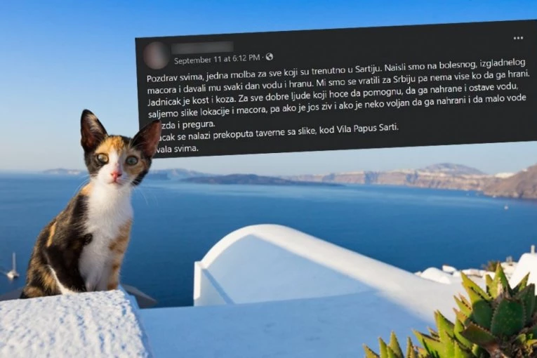 - Pozdrav svima, jedna molba za sve koji su trenutno u Sartiju. Naišli smo na bolesnog, izgladnelog mačora i davali mu svaki dan vodu i hranu. Mi smo se vratili za Srbiju pa nema više ko da ga hrani. Jadničak je kost i koza - napisala je ona i dodala: