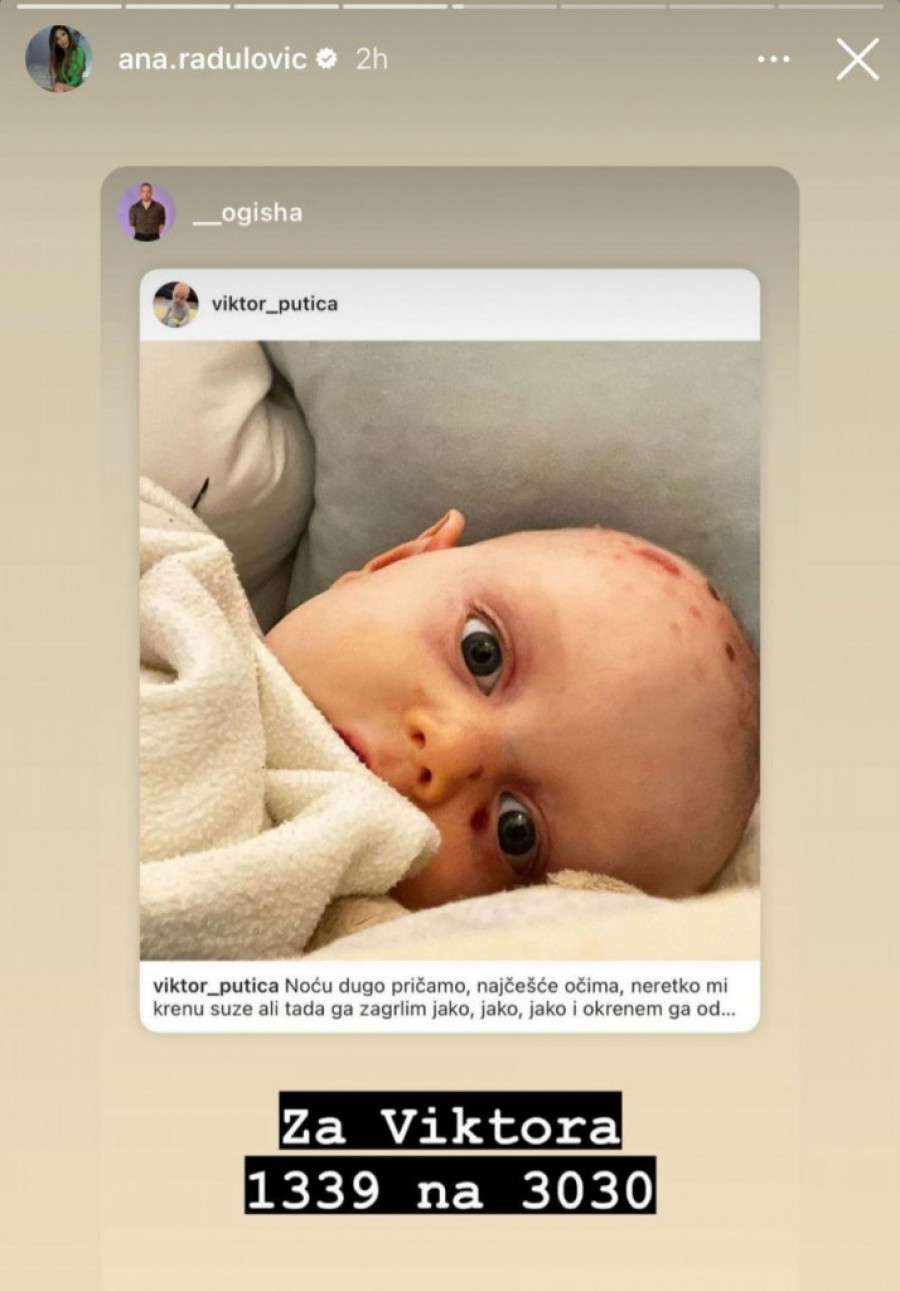 Noću dugo pričamo, najčešće očima, neretko mi krenu suze, ali tad ga zagrlim jako i okrenem od sebe da on to ne bi video, a kad nam se pogledi susretnu ponovo, razvučem osmeh, napisala je na svom Instagram nalogu Milena Putica, majka 17-mesečnog dečaka Viktora, koji je "dete leptir" i za čiji se život grčevito bori.