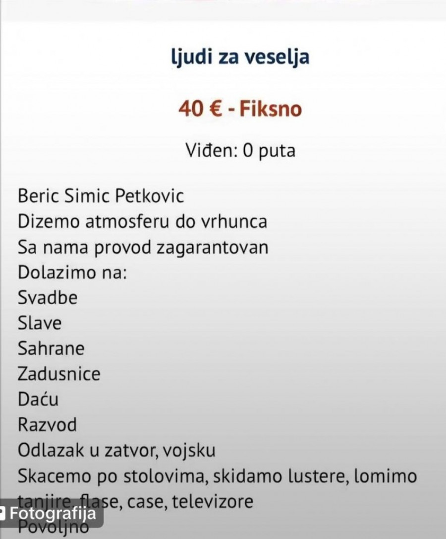 - Dižemo atmosferu do vrhunca, sa nama je provod zagarantovan - naveli su u opisu oglasa.