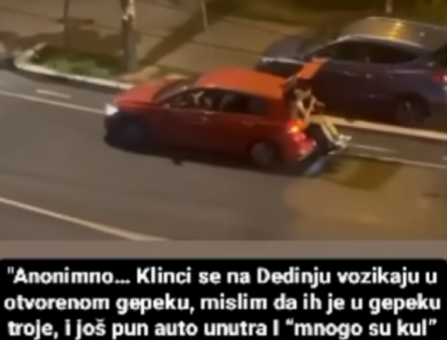 Na video-snimku koji je objavljen na Instagram stranici moj_beo_grad_ vidi se nekoliko tinejdžera koju se voze u otvorenom gepeku u blizini KBC "Dragiša Mišović" na Dedinju, prenosi Blic.