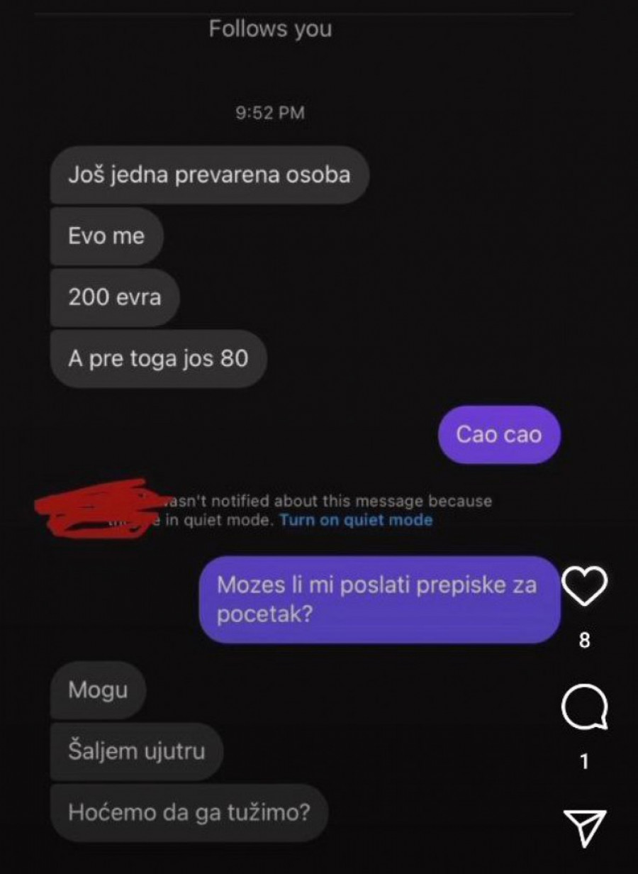 - Pitanje je da li se radi o firmi, turističkoj agenciji koja je registrovana u APR ili samo o nekom profilu na Instagramu gde neko nešto prodaje, čega ima milion, kao što prodaju patike, trenerke... pa se neko dosetio da na isti način prodaje nepostojeće aranžmane. Ako je ovo drugo u pitanju, onda je to klasična prevara i teško da će građani moći da ostvare svoje pravo na naknadu štete, jer se verovatno ni ne zna ko stoji iza toga. Slike su jedno, realnost može biti skroz drugačija, taj prevarant je ko zna ko i ko zna gde. A ako je ta agencija registrovana u APR i u Ministarstvu turizma, kao turistička agencija, onda treba proveriti koliko dugo postoji, kakav je priliv preko računa, da li je u blokadi, da li ima regularni način da se potraživanje naplati, ali ja nikada nisam za to čuo, tako da mislim da je to prevara - govori Gavrilović i apeluje na ljude da vode računa i ne kupuju i ne uplaćuju ništa preko društvenih mreža i interneta: