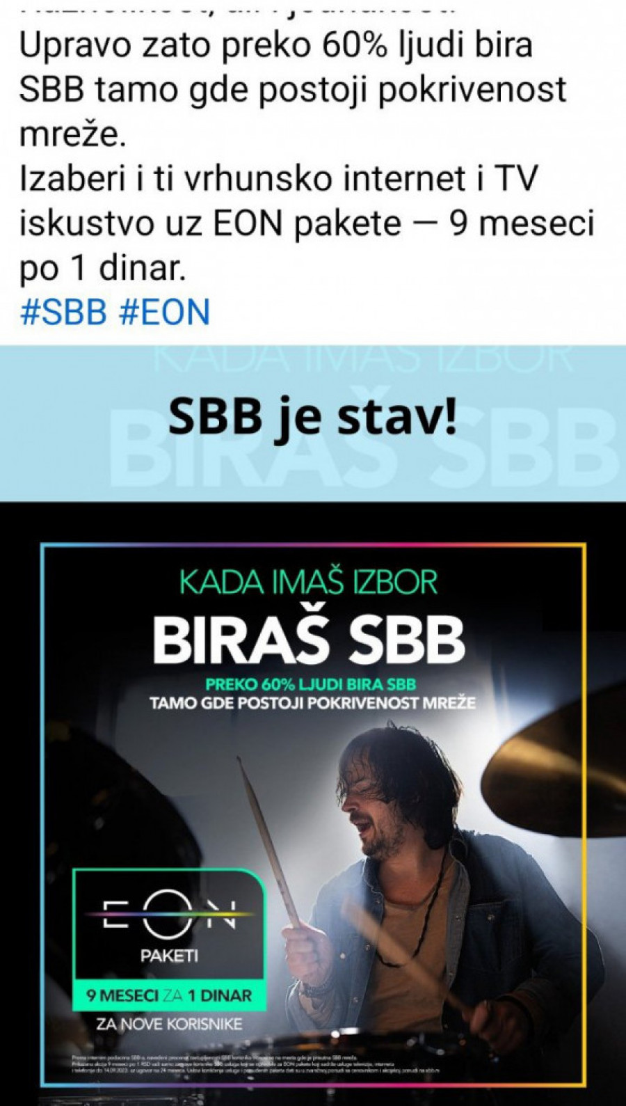 Odgovor SBB na pitanje o spornoj reklami: Nikog ne diskriminišemo!