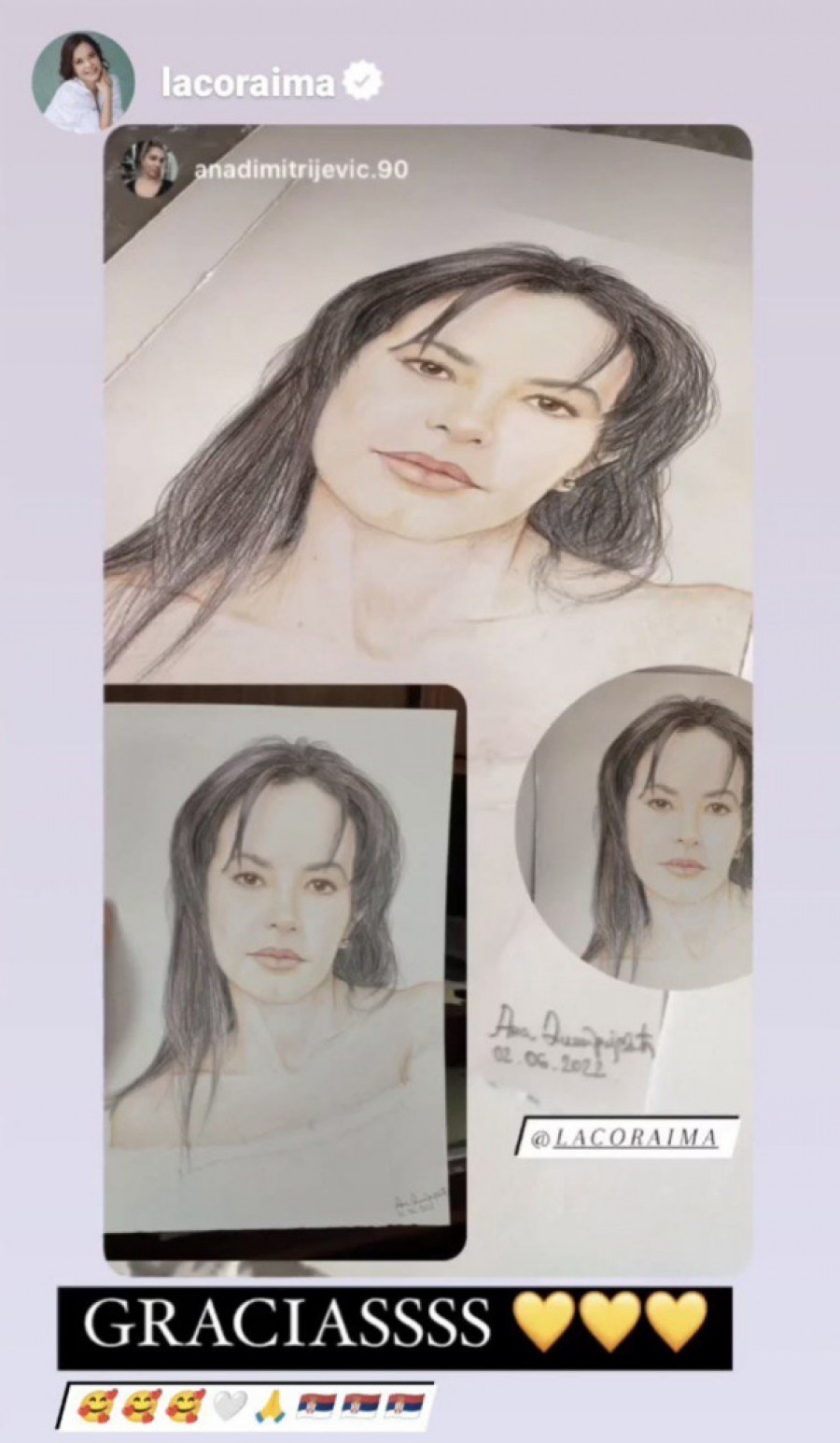 - Tako da sam nacrtala Kasandru, glumicu Koraimu Tores, koja mi se više puta zahvalila, ali i objavila na svim mrežama moj crtež, što me je posebno oduševilo! - govori za Republiku Ana Dimitrijević, umetnica.