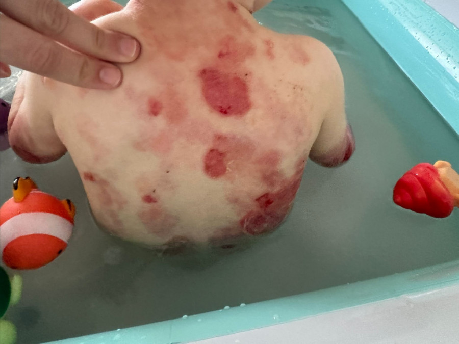 Delovi tela su mu krvavi, neke ranice čak i zagnojene. Previjanje koje mora da se obavlja svakog dana traje u proseku od 2 do 5 sati, a neophodno je da bi se sprečile komplikacije izazvane infekcijama, koje kod ovog stanja mogu da budu i fatalne. Bol i neprestana njegova borba i njegovih roditelja da svom mališanu olakšaju život su sastavni deo njihove svakodnevnice, ali od sna da mu bude bolje se ne odustaje.