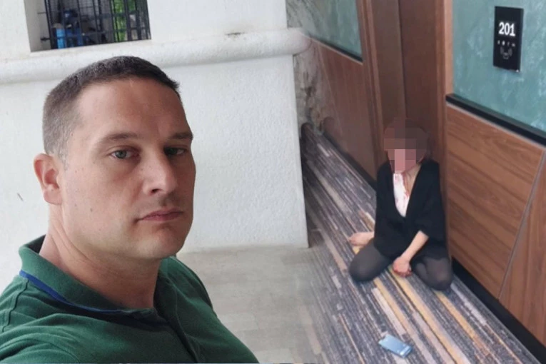 - Devojka je izašla i pala u hodniku, nije znala ni reč ni engleskog niti srpskog jezika. Kada smo videli da je ona ok, krenuli smo da vidimo gde je taj čovek, naleteli smo na policiju na vratima hotela. Nejga smo našli u podrumskim prostorijama hotela, telefon je bacio u granje - ističe i dodaje:
