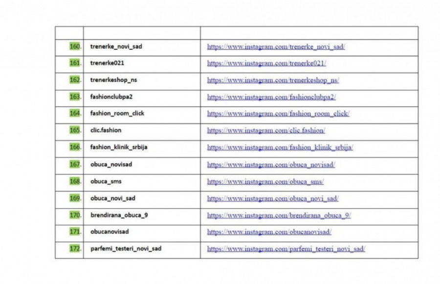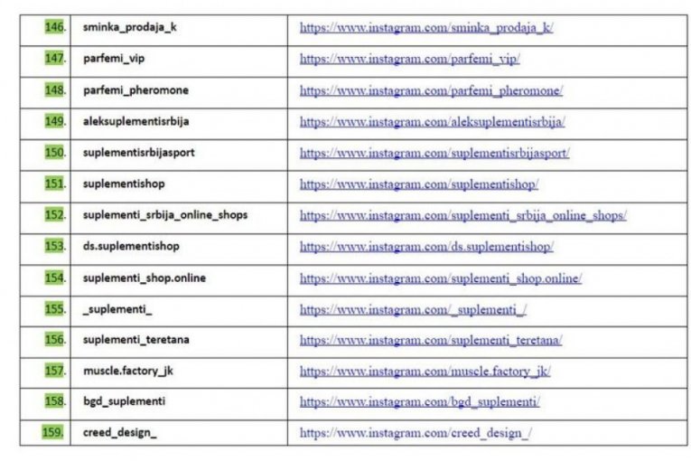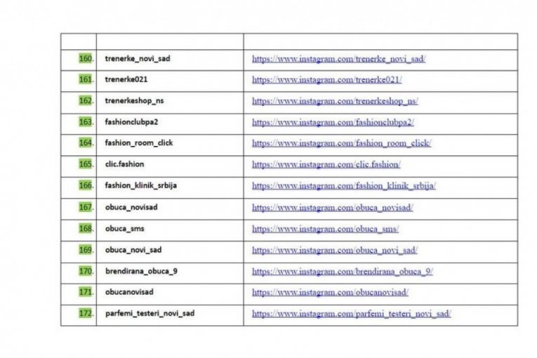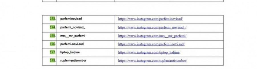 Spisak se stalno produžava, pa trenutno broji 178 naloga za koje je utvrđeno da ne posluju u skladu sa Zakonom o elektronskoj trgovini.