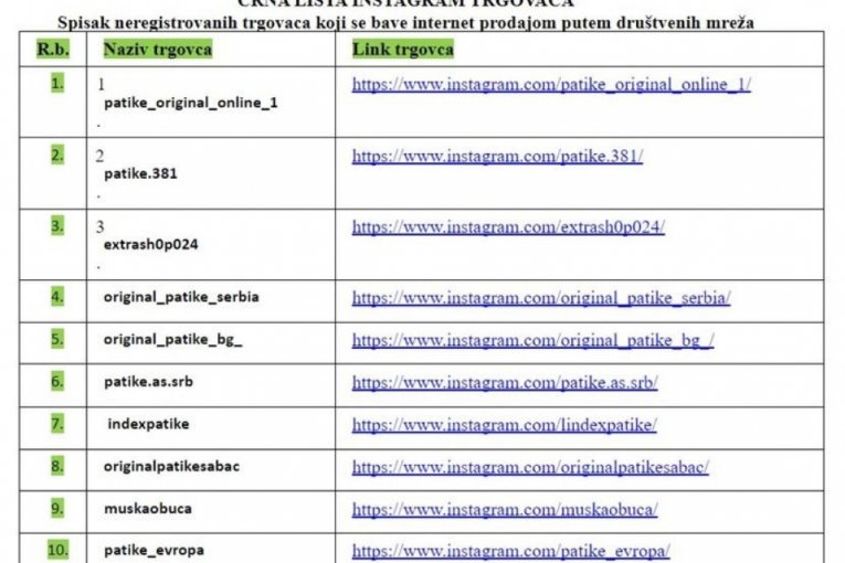 Nacionalna organizacija potrošača Srbije (NOPS) ‚objavila je dopunjenu listu trgovaca koji neregistrovano prodaju na Instagramu.