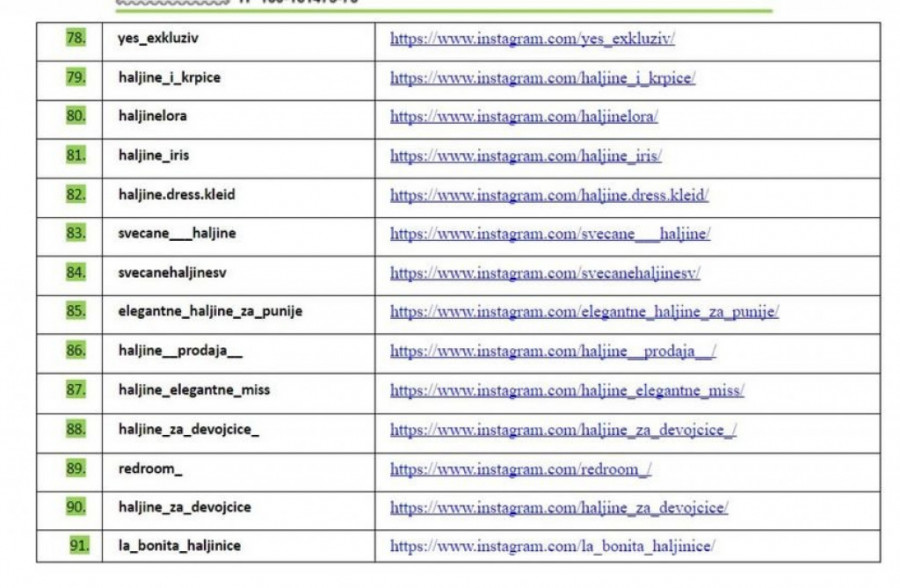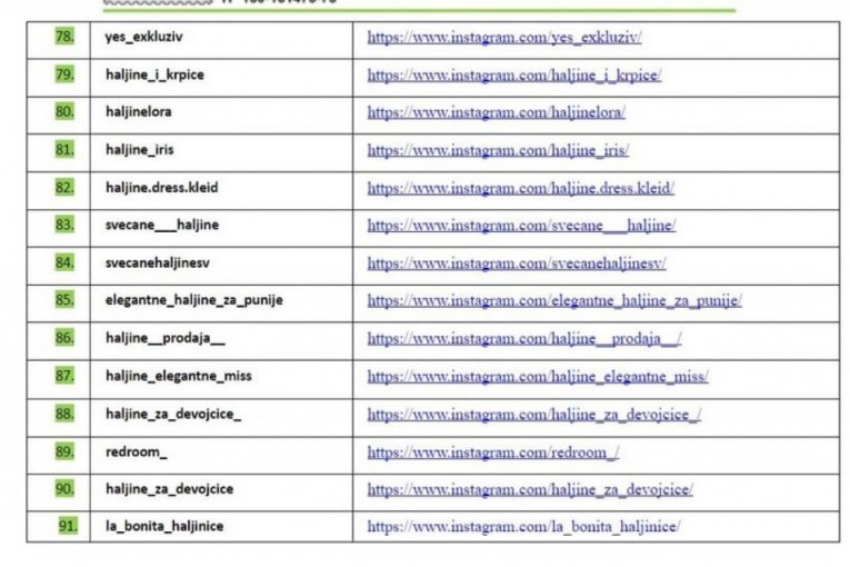 Printcsreen: Crna lista Instagram trgovaca/NOPS