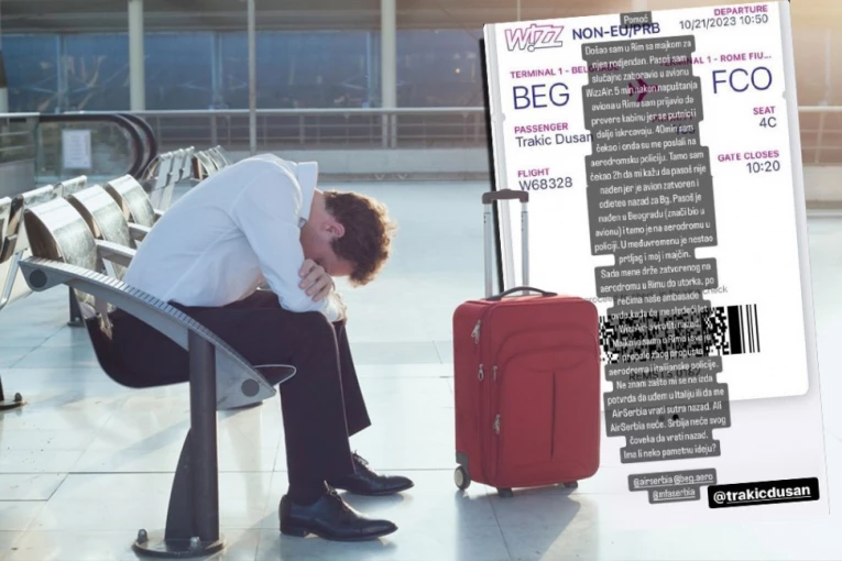 - Došao sam u Rim sa majkom za njen rođendan. Pasoš sam slučajno zaboravio u avionu Wizz Air. Pet minuta nakon napuštanja aviona u Rimu sam prijavio da provere kabinu jer se putnici i dalje iskrcavaju. 40 minuta sam čekao i onda su me poslali na aerodromsku policiju. Tamo sam čekao 2 h da mi kažu da pasoš nije nađen jer je avion zatvoren i odleteo nazad za Beograd. Pasoš je nađen u Beogradu (znači bio je u avionu)i tamo je na aerodromu u policiji. U međuvremenu je nestao prtljag i moj i majčin. Sada mene drže zatvorenog na aerodromu u Rimu do utorka, po rečima naše ambasade ovde, kada će me sledeći let WizzAir vratiti nazad. Majka je sama u Rimu i sve je propalo zbog propusta aerodroma i italijanske policije. Ne znam zašto mi se ne izda potvrda da uđem u Italju ili da me Air Serbia vrati sutra nazad. Ali Air Serbia neće - napisao je jedan Dušan na Instagram stranici Serbia live Beograd.