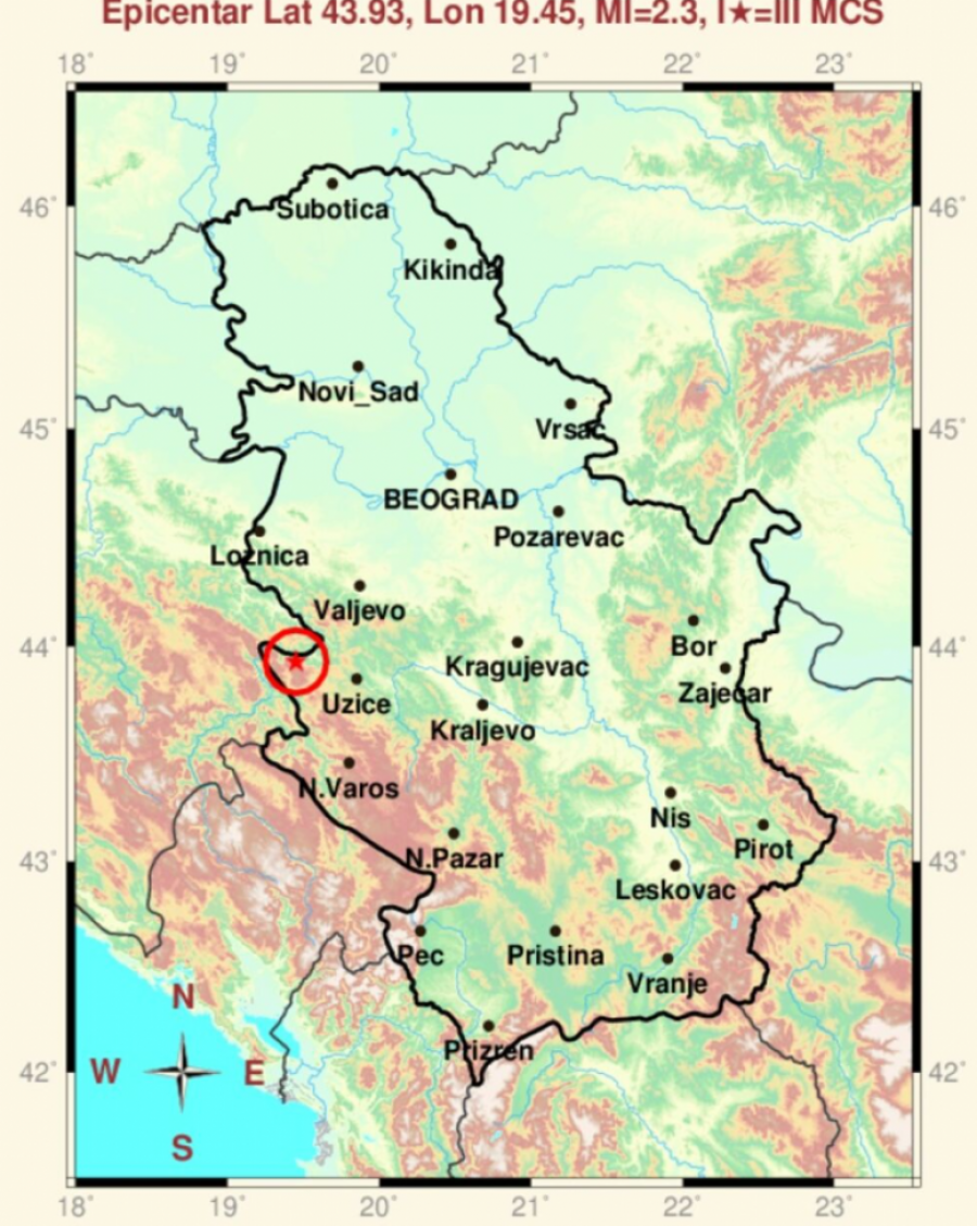 Bio je jačine 2, 4 stepena po Rihterovoj skali, prenosi Telegraf.