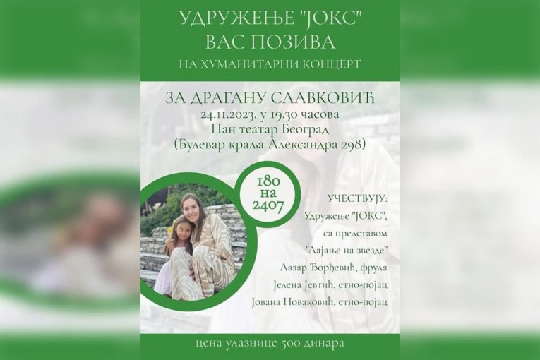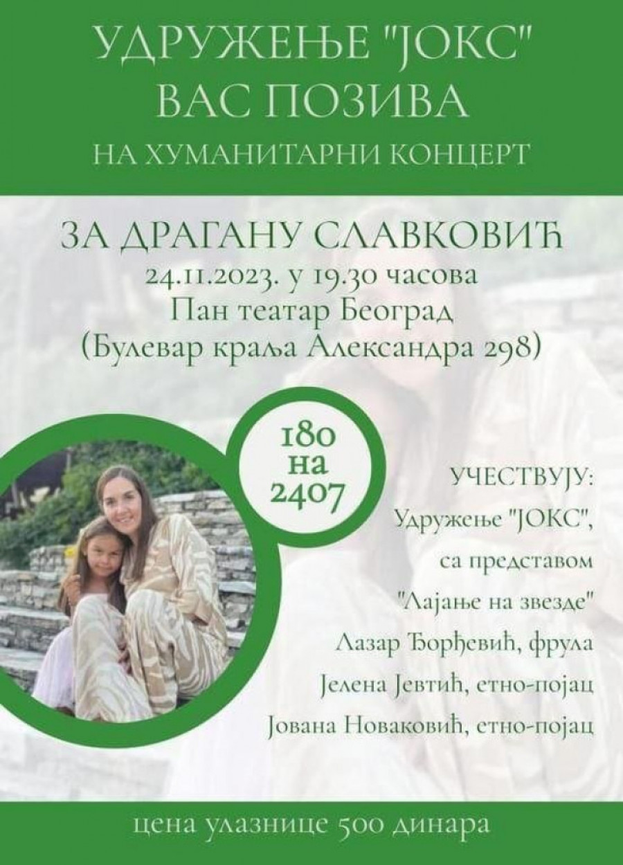 Udruženje "JOKS", u saradnji sa frulašem Lazarom Đorđevićem i etno-pojcima Jelenom Jevtić i Jovanom Novaković, organizuje humanitarni koncert zakazan za 24. novembar, s početkom u 19:30 časova, u Pan teatru u Beogradu. Program ovog koncerta obuhvata izvođenje predstave "Lajanje na zvezde", uz etno-pojanje i sviranje.