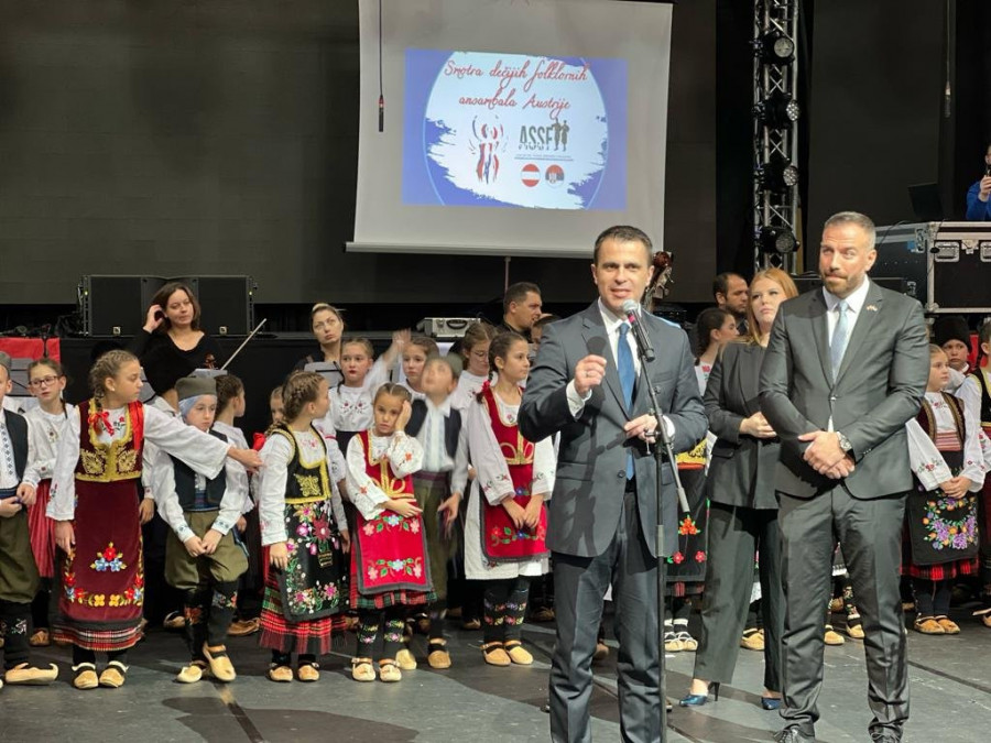 - Veliko mi je zadovoljstvo da sam danas ovde sa vama, da kao ministar u Vladi Republike Srbije mogu da otvorim ovu predivnu manifestaciju i da vam prenesem podršku našeg predsednika Aleksandra Vučića i celog državnog rukovodstva. Puno mi je srce kada vidim ovu našu prelepu mladost, našu decu u srpskim narodnim nošnjama, koja daleko od pradedovskih ognjišta čuvaju svoju tradiciju, pesmu, igru... Koja čuvaju srpski jezik ovde u srcu Austrije. Draga deco, vi ste budućnosti srpskog naroda, čuvari vrednosti koje su nam dragocene, i danas smo svi mi ovde da vam pružimo podršku - rekao je ministar, koji je posebno zahvali Aleksandru Saši Stankoviću, predsendiku Austrijskog saveza srpskog folklora na predanom radu i trudu koji ulaže u očuvanje i promociju naše bogate kulturne baštine.