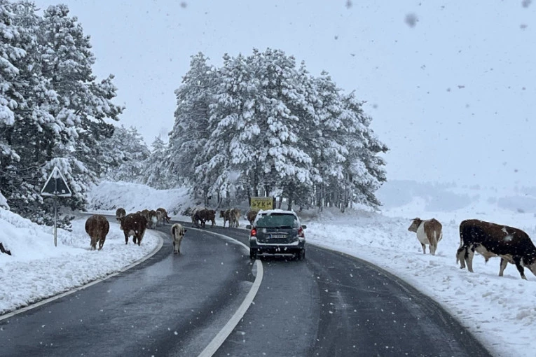 - Vožnja je tekla normalno i onda smo odjednom ugledali par vozila ispred nas koja stoje. Mislili smo da je neki zastoj zbog radova na putu, ali kada smo izašli iz automobila videli smo nekoliko krava koje stoje nasred kolovoza i ližu posutu so. To nam je bilo zanimljivo, ali one su baš bile uporne i jedva su se sklonile kako bismo mogli nastaviti put, rekao je za RINU Milan Stanojević koji se zatekao na licu mesta.