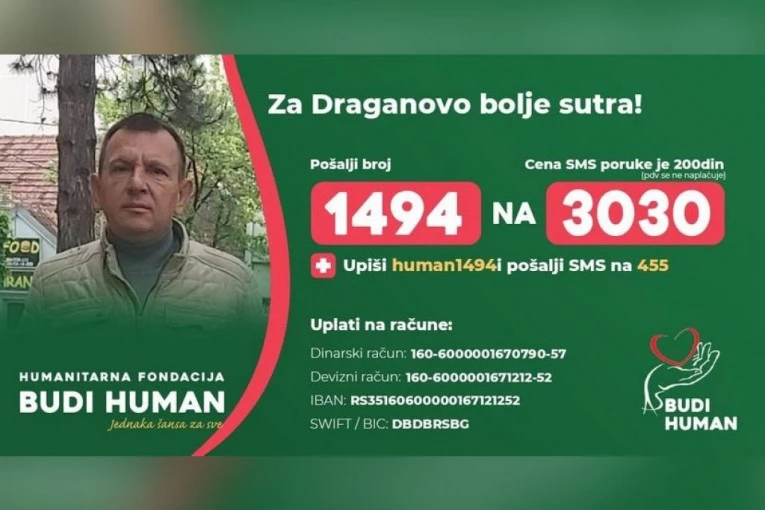 - Ova borba je teška, kako bih jednog dana mogao da se napijem vode jer sam sada ograničen na pola litre i da počnem da živim normalan život. Teško mi je jer su u subotu moja majka i supruga stajale u Velikom parku boreći se za moj život za štandom skupljaći novac. Auto moram da prodam i svašta nešto drugo da bih dobio ovu bitku - rekao je Dragan za Telegraf dok je čekao dijalizu.