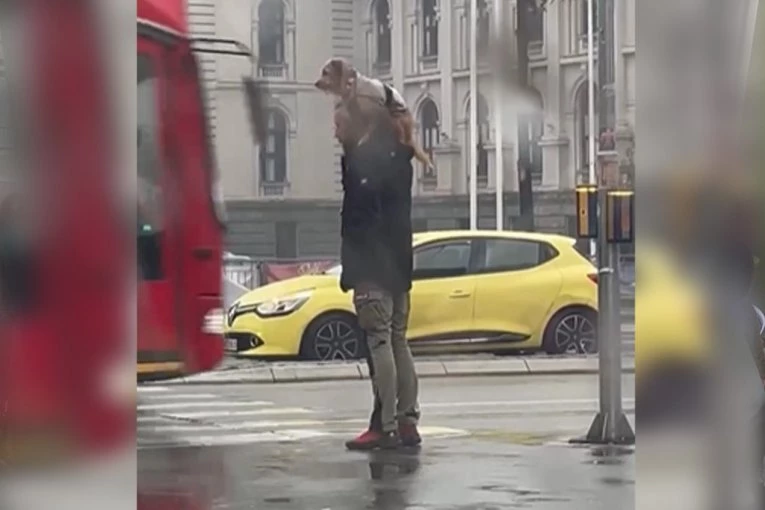 PRIZOR KOJI JE RAZNEŽIO SVE KORISNIKE DRUŠTVENIH MREŽA: Čovek koji drži svog psa na leđima jer je mokar trotoar