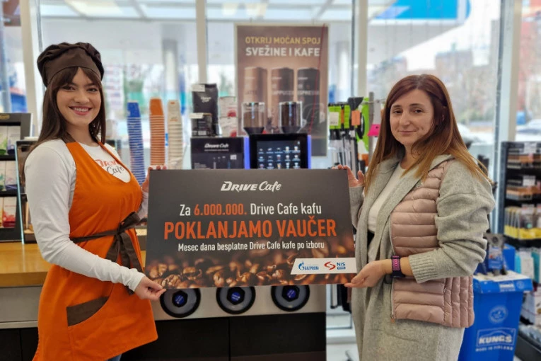 Ovih dana ispisujemo istoriju Drive Cafe kafe! Od početka 2023. godine popijeno je šest miliona šoljica italijanske kafe vrhunskog kvaliteta na NIS Petrol i Gazprom benzinskim stanicama. Tim povodom kompanija NIS je nagradila potrošača koji je sipao jubilarnu šest milionitu šoljicu kafe. Reč je o Palmiri Vićentić iz Beograda kojoj je u savremenom i prijatnom ambijentu modernizovane benzinske stanice „Avalski put“ uručena nagrada koju bi svaki ljubitelj kafe poželeo - mesec dana besplatnog konzumiranja Drive Cafe kafe na bilo kojoj NIS Petrol ili Gasprom benzinskoj stanici.