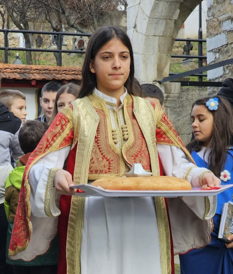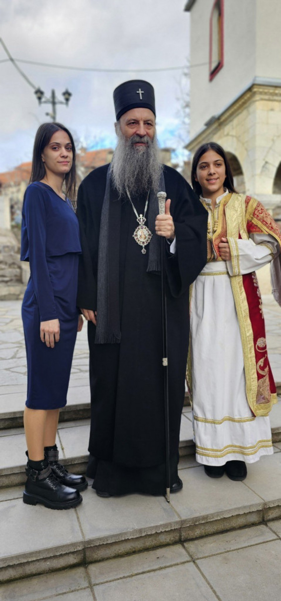 Patrijarha je, kada je došao, zajedno sa ostalom decom, dočekala i Pavlina Radovanović koja važi za devojčicu anđeoskog glasa, koja živi u Orahovcu.