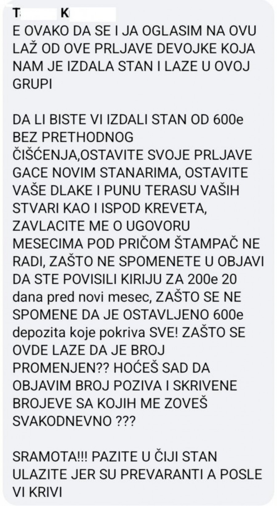 "NOVIM STANARIMA STE OSTAVILI SVOJE PRLJAVE GAĆE I STVARI ISPOD KREVETA" Bukti rat na mrežama: Vlasnica stana napala STANARKE, one žustro uzvratile: HOĆEŠ SAD DA...? (FOTO)