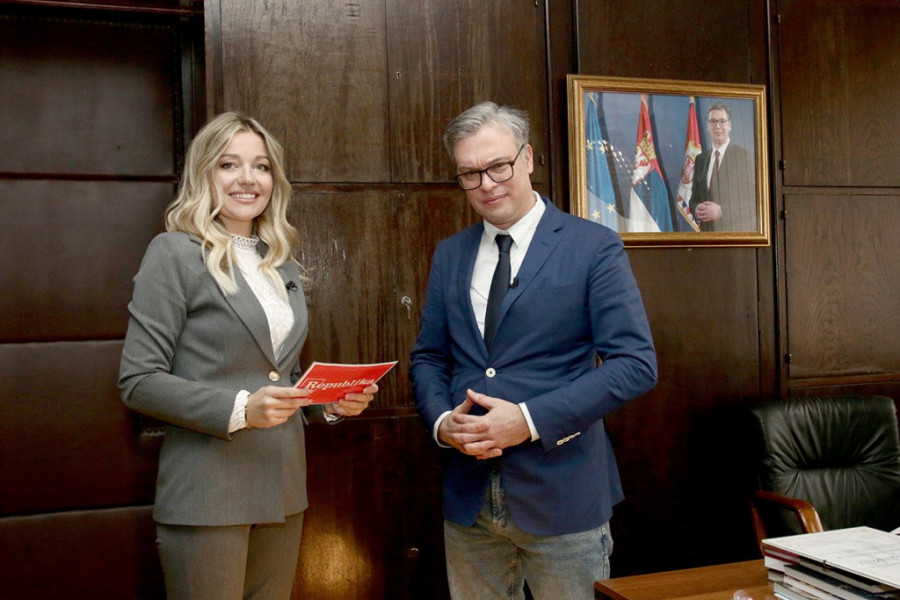 On je, u svom stilu, razgovor započeo imitirajući Vučića i govoreći o aktuelnim temama kao što su Svetski ekonomski forum u Davosu i EXPO 2027 čiji će domaćin biti naša zemlja.